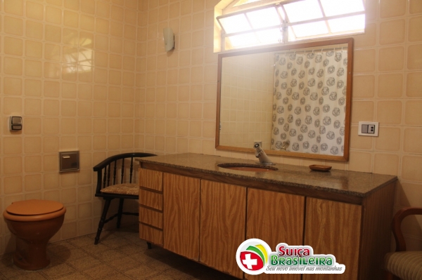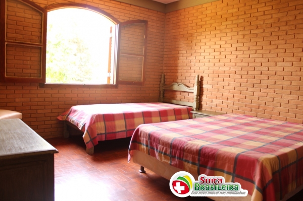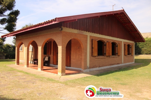 Casa sobre um lote de terreno plano, ensolarada, terrea, com cômodos amplos, sendo 03 quartos, 01 deles suíte, sala de estar com lareira, sala de jantar, copa, cozinha, área de serviço. Casa de caseiro com quatro, sala, cozinha e lavanderia