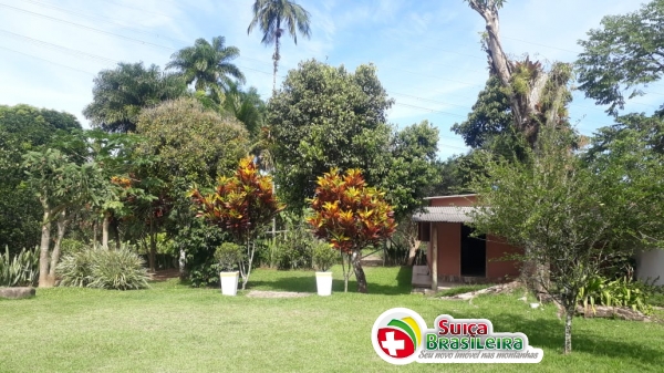 Chácara com 3.668m2, em APP(Área de Preservação Permanente) à 900m2 da BR 101 com 2 suítes(box blindex),18m2 cada, 2 suítes(em construção) 14,5m2 cada, living 37m2 ( fase de acabamento). Área gourmet 48m2 com churrasqueira, forno e fogão à lenha, lavabo.Piscina em fibra 9,0 X 4,25 X 1,40, 1 casa com 72m2 (à ser reformada), 1 casa de caseiro 54m2 com 1 suite, 1 dormitório, cozinha americana, sala e varanda. Paisagismo. Pomar. Horta orgânica e galinheiro.276 m2 construção3668 m2 terreno