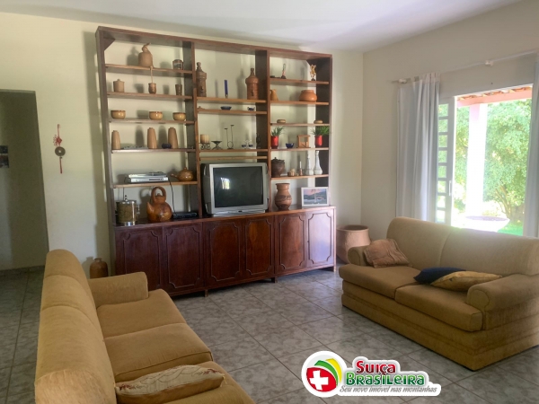 Sítio com 10 alqueires, com casa principal com 04 dormitórios sendo 01 suíte, casa de hóspedes com 01 suíte, 02 depósitos, area ade lazer completa com dois quartos e banheiros feminino e masculino, piscina com 4x9 m com 1,5 m de profundidade, 09 alqueires de pasto formada, 15 mil litros de água em caixa d’água, água de mina da própria propriedade e área de reserva. Pomar com 40 espécies de frutas, 03 lagos de peixes e curral